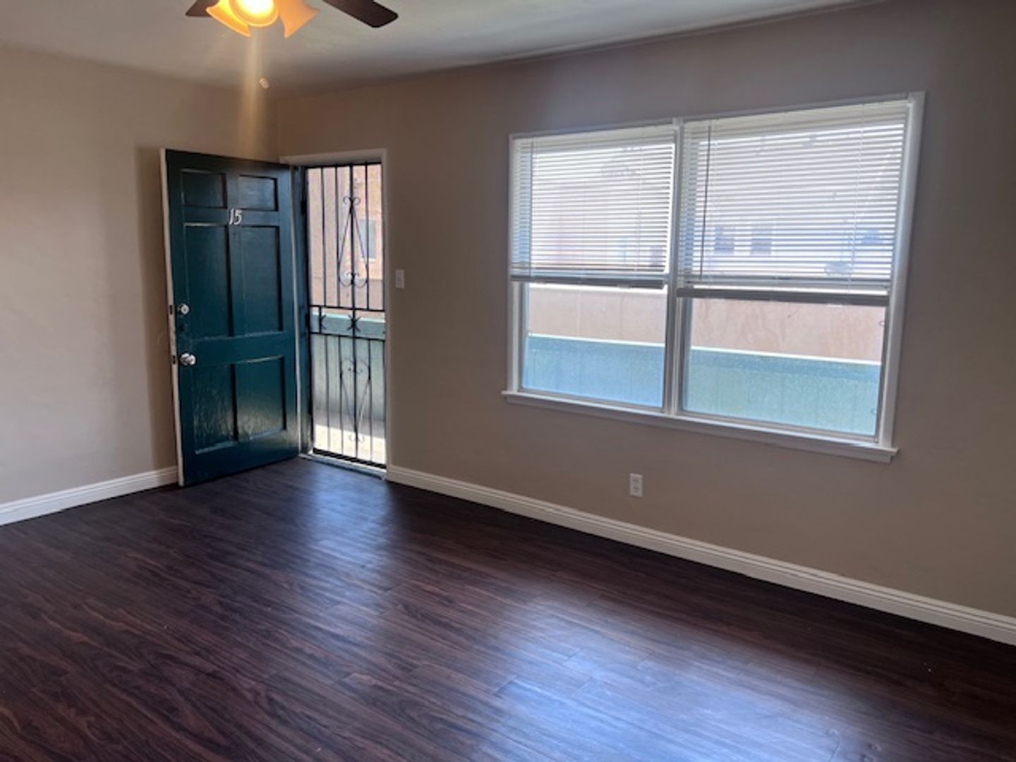 Upstairs studio apartment for rent. This open floor plan studio apartment captures everything you need for a modern urban lifestyle. This gated apartment features plank flooring, floor & ceiling molding and fans throughout. Enjoy a bright kitchen with granite countertops!
